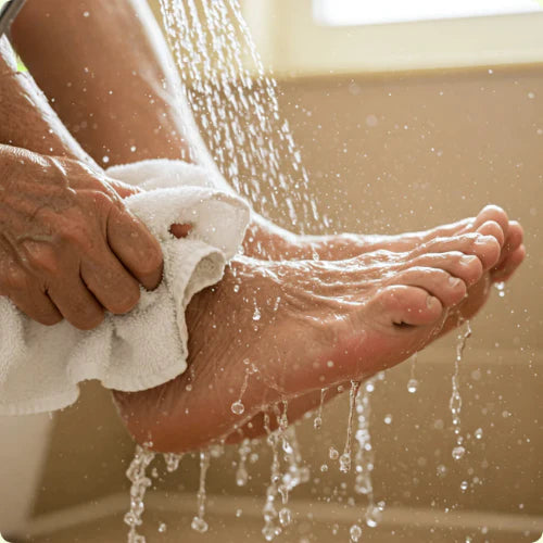 Wash and dry your feet thoroughly, paying particular attention to the areas between your toes, where fungi thrive.